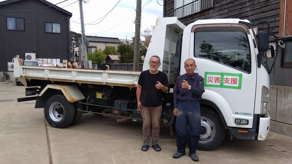 ▲ 萩原さん、磯辺さんです!前回「志賀町での釣鐘救助作戦」でも絶大支援を頂きました。お二人もこの時期は特に忙しいのですが「手伝いに行きます!」と快諾…氷見市の株式会社萩原建設様のご協力を頂き、片道100分程度の悪路を走って輪島に来てくれました。