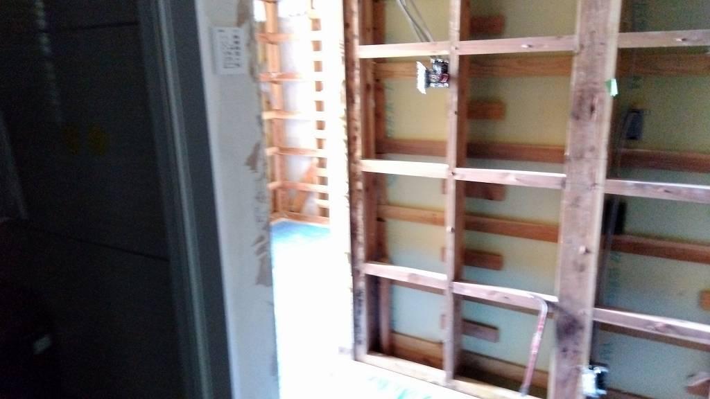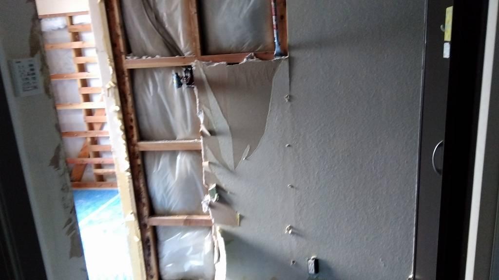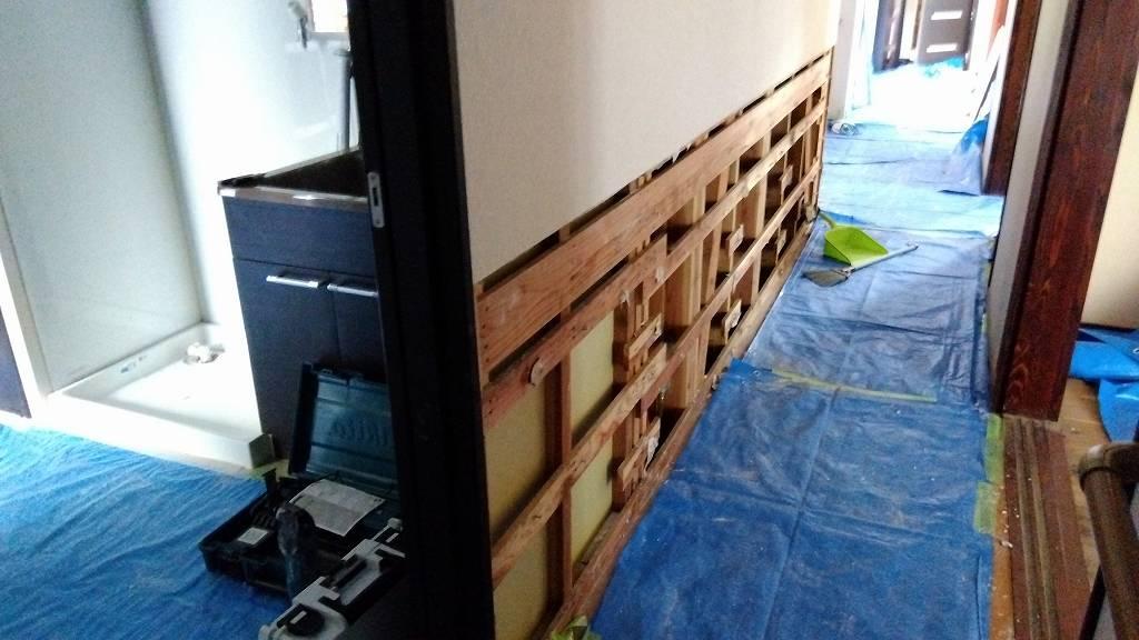 ▼ 今日は二軒の床剥がし・壁剥がし作業をお手伝いしました。一軒目は写真を撮る間もなく作業しました。下の写真は二軒目の壁剥がしの様子です。