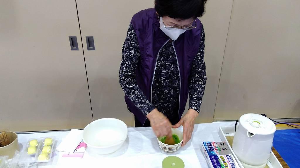 ボラセン体育館にこの町の茶道の先生が来て下さって、私にもお茶をたててくださいました…。