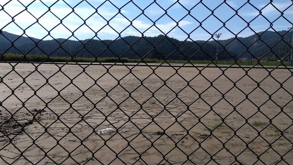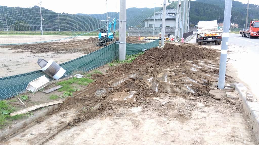 町野町(まちのちょう)に入りました。広大なグラウンドの泥掃き開始
