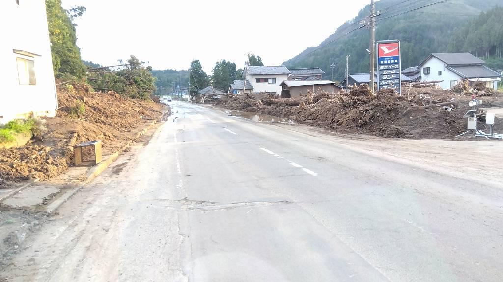 被災地の写真を撮るというのはあまり気持ちの良い物ではありません…。しかも写真を撮ったところで、現場の状況はフレームに収まりません。これは洪水で上がって来た土砂…中心地はもっとひどい状況です。