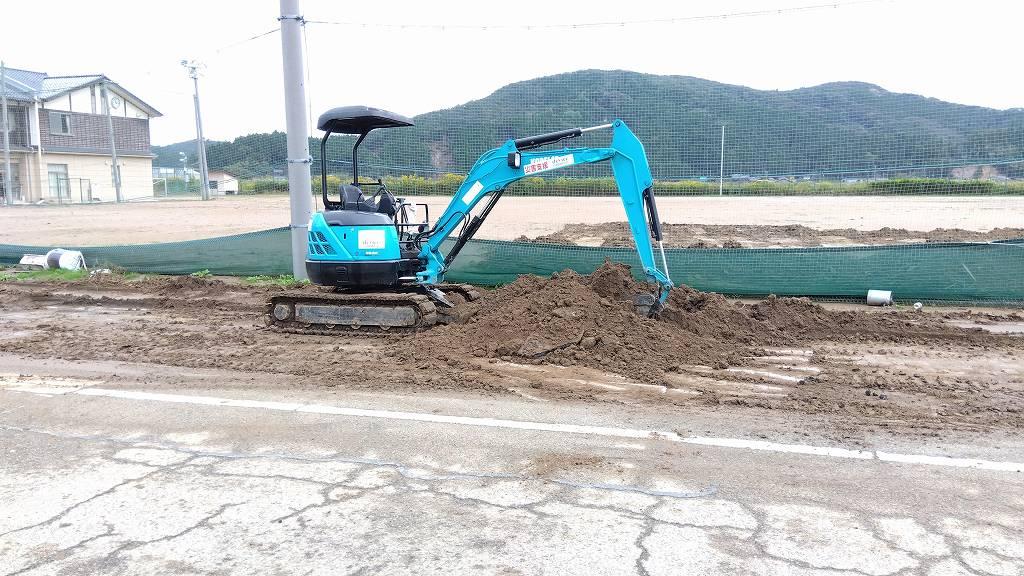 まぁ~良く捉えれば、こんなミニショベルで頑張ってる姿を知って何か心に届いたのかな?と言う捉え方もありますが、このまま私に任せたらグラウンドを壊されるって思って焦ったのかも知れません(笑)。それはどっちでもOK!肝心なのは、この広いグラウンドが駐車場やヘリポートとして運用できれば、絶対に復旧復興の速度は増すのは確実です!教育長がしっかりと腰を上げてくれて本当に良かった!