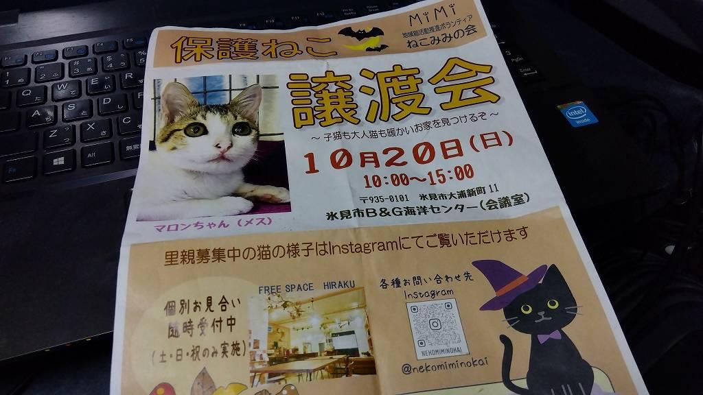 明日は氷見市で保護猫活動をされている「ねこみみの会」さんの譲渡会です!氷見市のB&G海洋センターで10時~15時まで行っているそうですので、皆さん是非!可愛い猫さんたちを見に行ってあげてください。本当は私も行くつもりだったのですが、スケジュールが上手く組めず今回は見に伺えません。