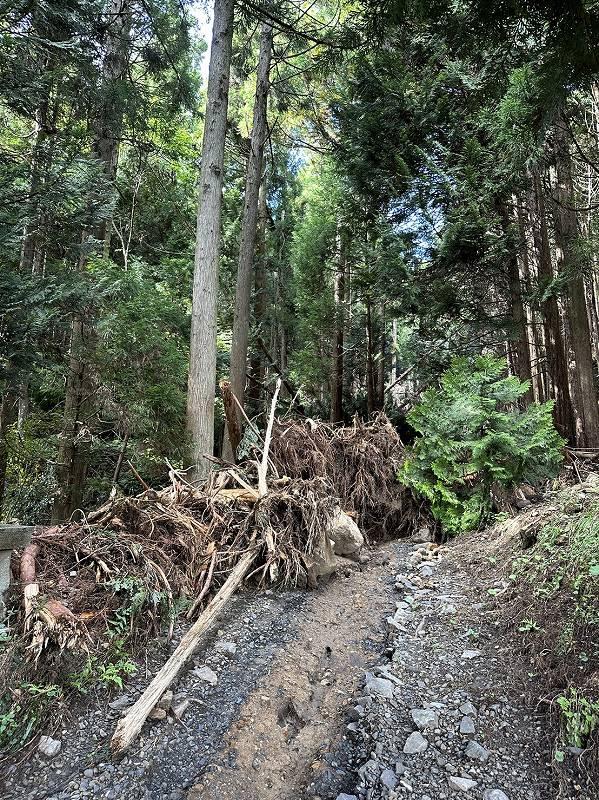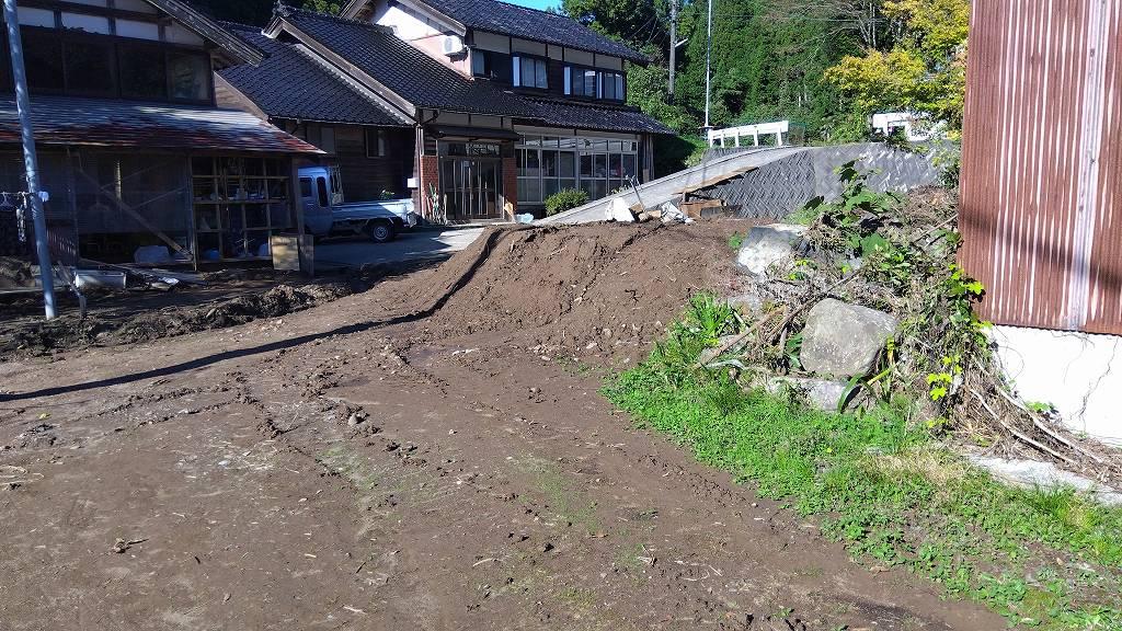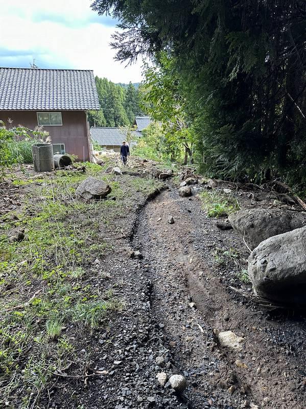 ▲ 山が崩れて自宅側に川の流れが向いてしまったお宅。この土砂撤去も行います。