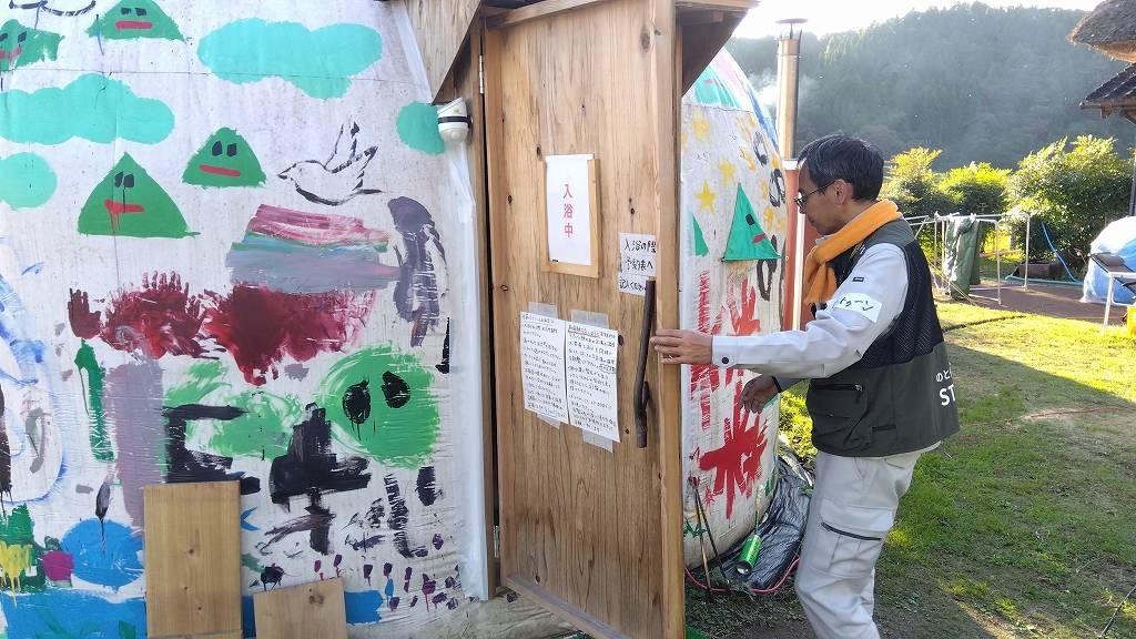 若い方たちがこの集落を守るべく、団結されて頑張っている私設ボランティアセンターのようです。若い方々の力になれるよう、そして私のスキルと資機材がお役に立つように精一杯作業を進めてまいります。ちなみに・・・本日は「一番風呂」を頂きました(笑)※でもダンプで寝ます。