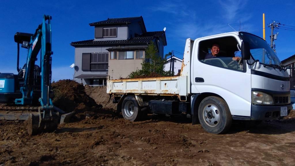 ▼ 泥を出している土地の方からダンプでゴロンと落とします。落としてから今度はまた戻って重機を積んで持ってきます。